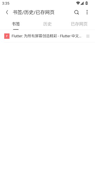 4、之后,你可以在菜单中打开【书签/历史】来查看已收藏的页面。